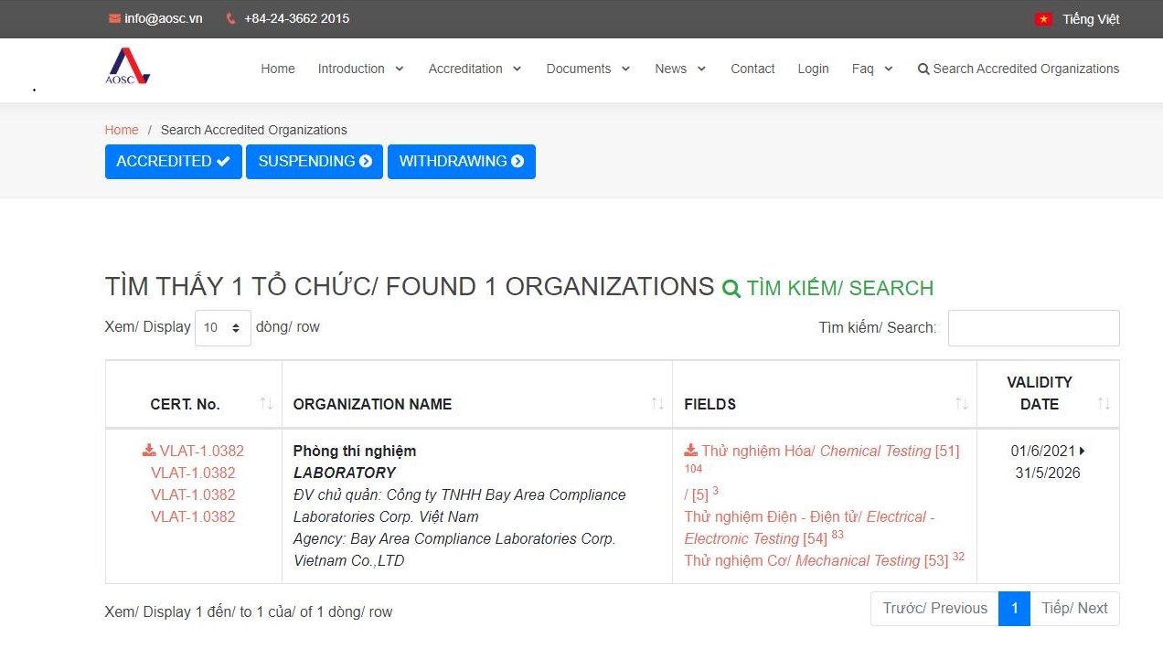 2023年10月,BACL成为越南首家获批AOSC EMC扩项认可的实验室!同时也是越南首个可以测试手机、平板等无线通信射频类的实验室。产品涵盖GSM2G,CDMA3G,LTE4G,5GNR,填补了越南此类测试的空白。